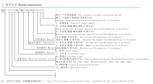 7. 產(chǎn)品出廠銘牌上只體現(xiàn)總單元內(nèi)容,名分單元代號為訂貨參數(shù);