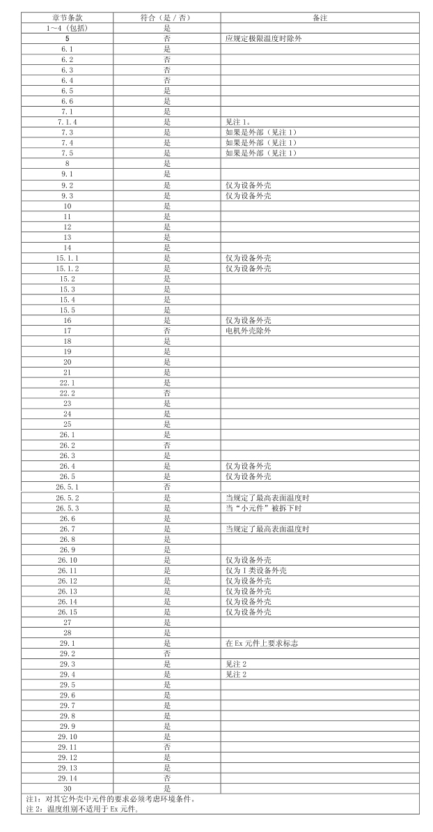 Ex元件要是用在防爆電器中使用,首先要滿足GB3836.1文件中對Ex元件的規(guī)定,見下表。